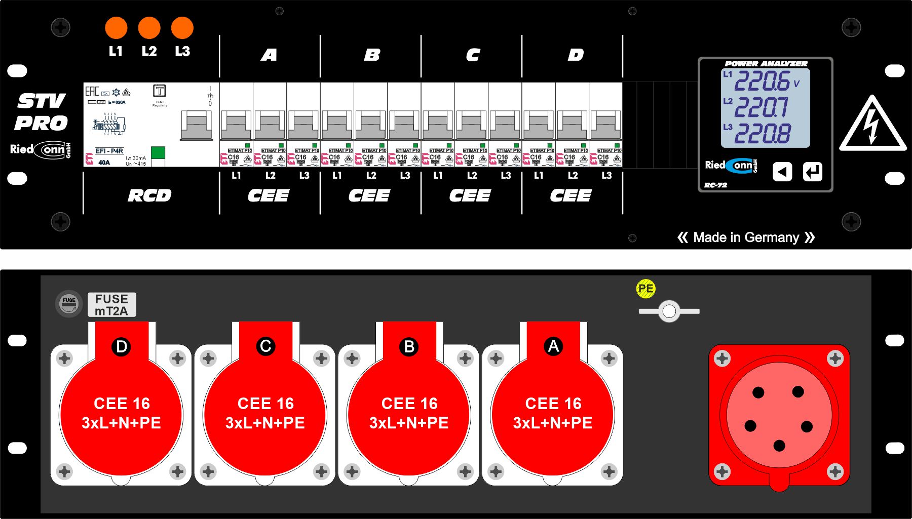 OUT: 4x Anbaudosen CEE16 400V, 5p. 6h