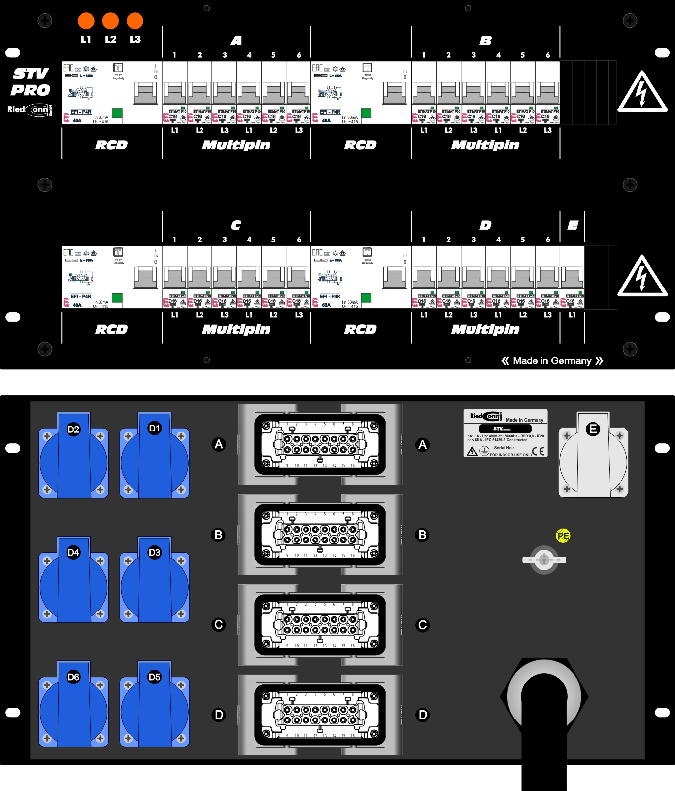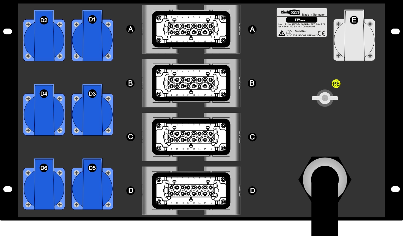 6x Schuko 230V, 16A / parallel zu OUT 4