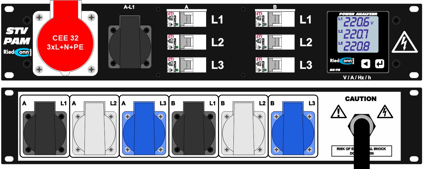 Rückseite, eindeutige Phasenzuordung durch farbige Schukos