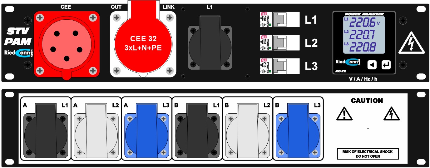 Rückseite, eindeutige Phasenzuordung durch farbige Schukos