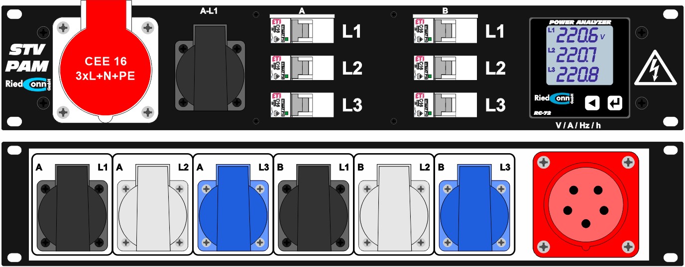 Rückseite, eindeutige Phasenzuordung durch farbige Schukos