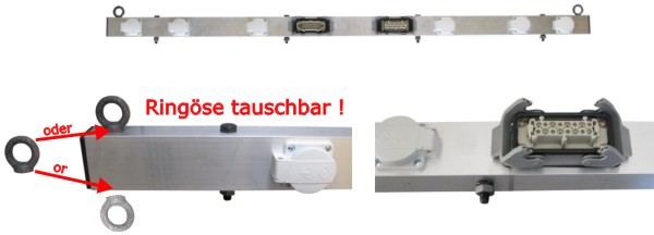 Zusätzlich 2 Stück Ringöse M8 zum Aufhängen der BAR an Seile, Haken u.s.w.