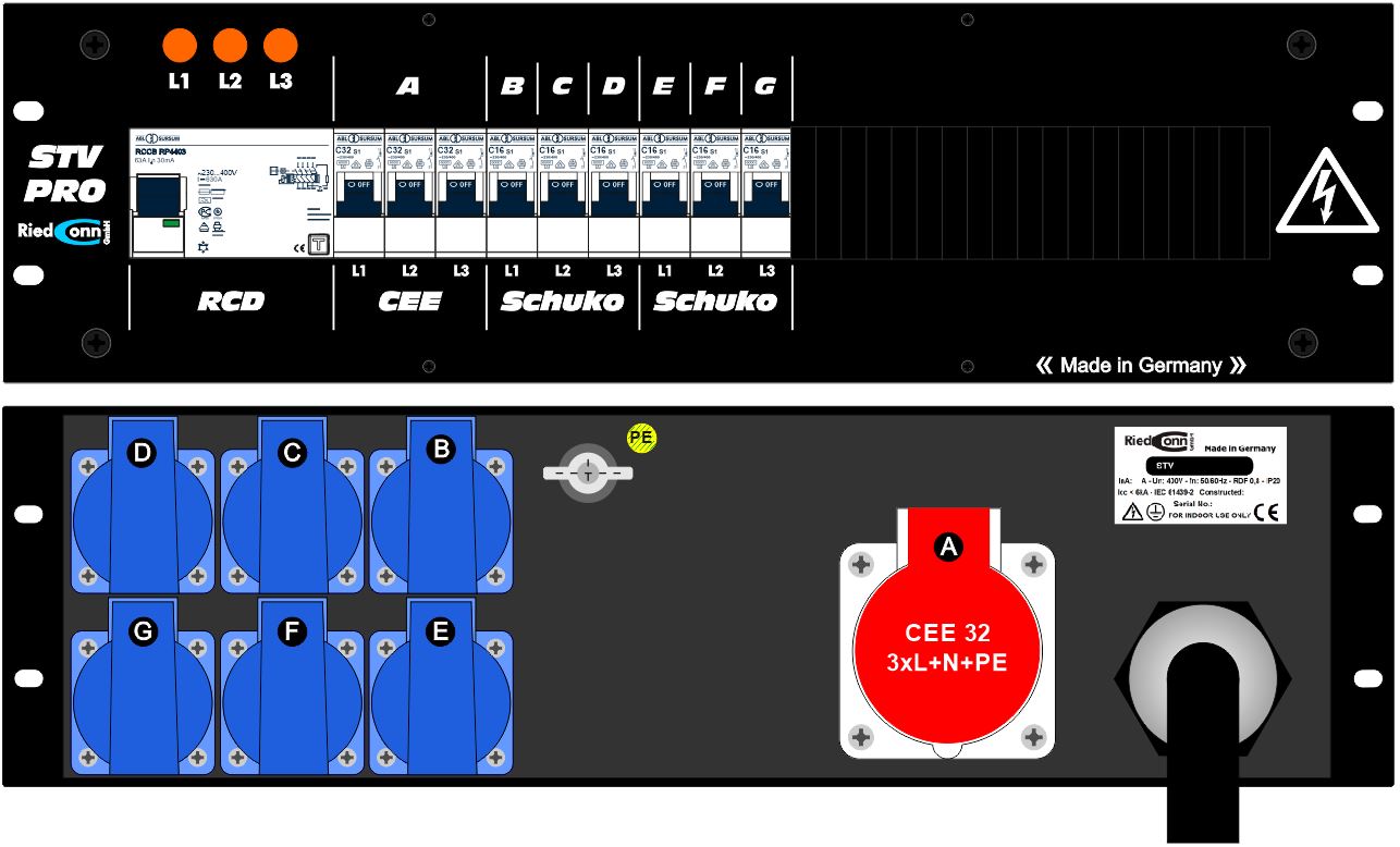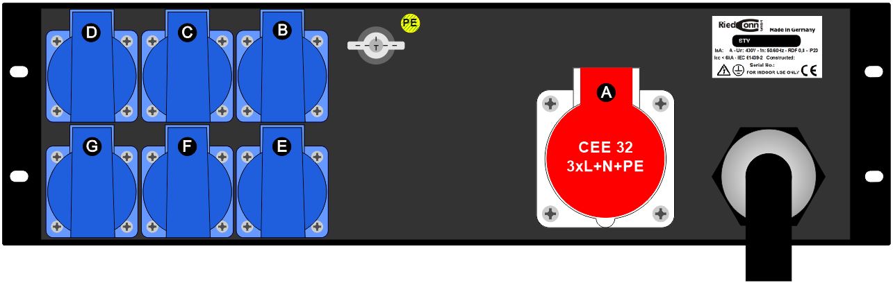 6x Schuko 230V, 16A
