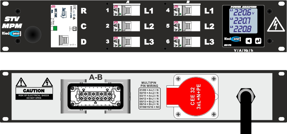IN: Stecker CEE32 400V, 5p., Hinten mit ca. 2m Kabel H07RN-F 5G4