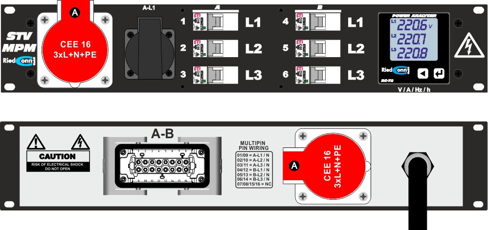 IN: Stecker CEE32 400V, 5p., Hinten mit ca. 2m Kabel H07RN-F 5G4