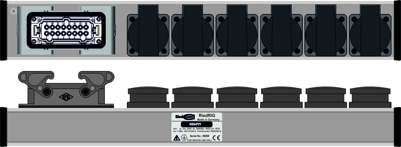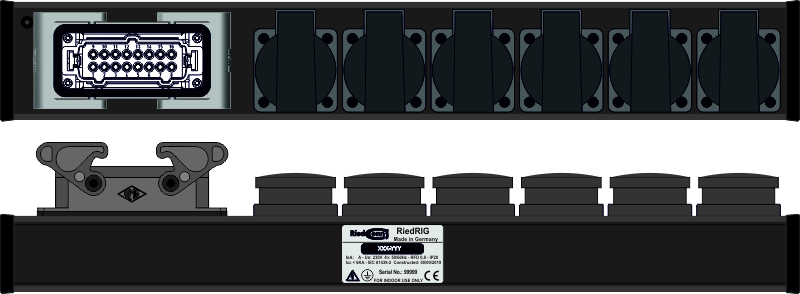 6x Schuko mit Klappdeckel + Dichtrand, schwarz