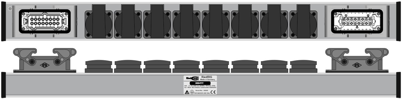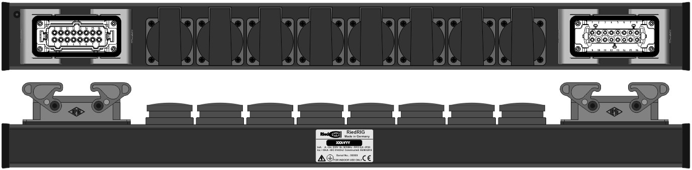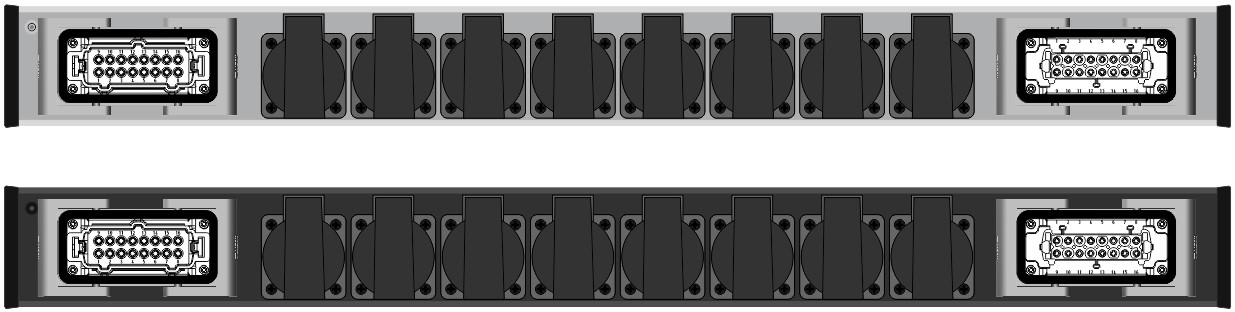 8x Schuko mit Klappdeckel ohne Dichtrand, schwarz