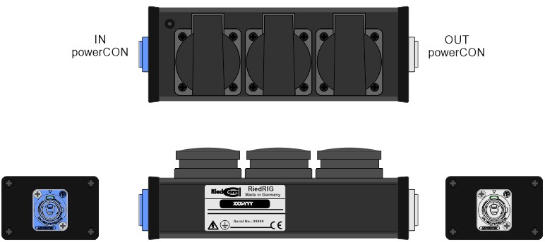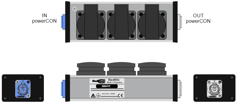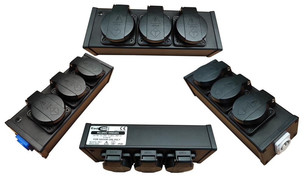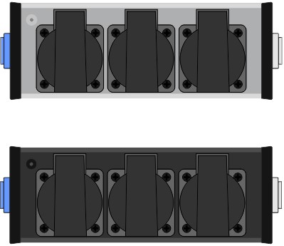 3x Schuko mit Klappdeckel ohne Dichtrand, schwarz
