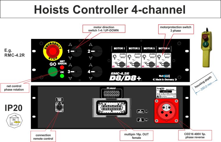 4x Panel receptacles CEE16 400V, 4p. 16A, red