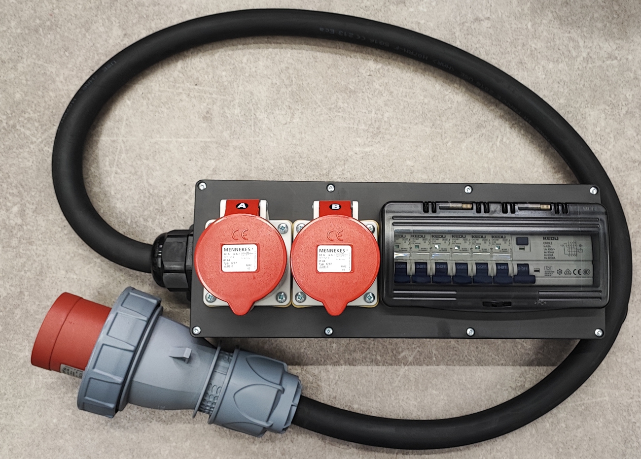 OUT: 2x Panel receptacles CEE32 400V, 5p. 6h
